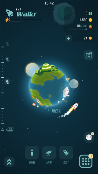 很遗憾walkr没有帮我减肥,甚至没有督促我每天多走两步路,大概证明了没有什么外力能够拯救胖子【不】,减肥还是得靠自己的意志。但这不妨碍walkr是一款蛮好玩的放置游戏。没有过多的操作,就是发现星球、建造DFR生产食物、用食物喂养星球、从星球上收取金币、用金币去发现更多的星球。在飞船10级之后可以长按收菜,进一步简化操作。符合轻松放置的调性。