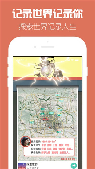 2、APP会自动的记录您所走过的路线信息,分析您当前地图中行走的范围,体验探索世界的新方式;