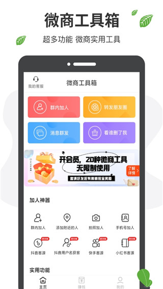 4、一键加粉:只需一键点击加粉,即可获得大量微商人脉资源;