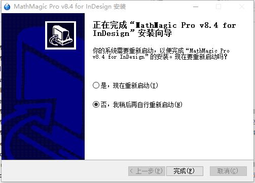 4、软件安装完成,点击完成,选择否,退出安装界面。