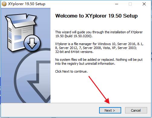 1、下载数据包然后解压,双击“XYplorer_19.50_Install.exe”点击next