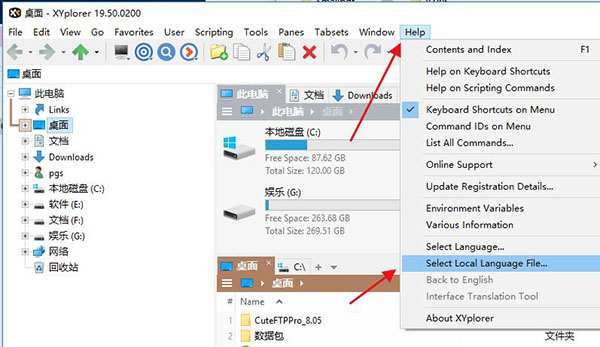 9、然后将破解补丁复制到C:UserspgsAppDataRoamingXYplorer目录下运行软件,点击help——select local language file