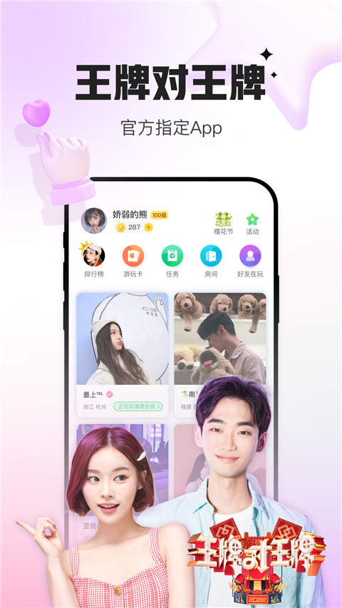 真人匹配对战,连麦游戏,1v1、2v2趣味互动,边玩边聊真开心!跳一跳双人版、飞行棋、五子棋...总有一款适合你!