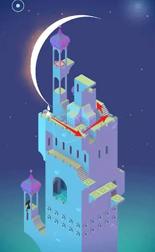 游戏地图的每个设计都是出人意料的,而且在其中还有着诸多机关,可能因为你按住了某个开关就会浮现出新的道路,而这个道路通向何处谁都不知道,也就大大提高了游戏的趣味,毕竟未知才会带来更多的渴望!不仅如此这款纪念碑谷游戏非常考验玩家们的思维能力,你需要通过合理地思考,结合发生的已然事件,再根据一系列的线索找出前进的方向,往往只需要灵机一动就能让你通关更为顺利哦。