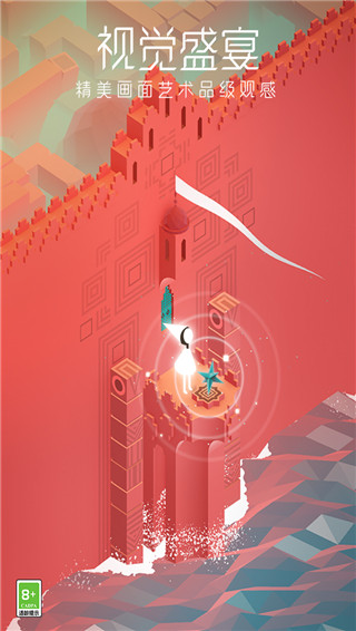 纪念碑谷是一款独具特色的探索冒险游戏,这可是真正的神作精品手游,获得了苹果最佳年度游戏奖和最佳设计奖等多项国际游戏奖,还在国内引起了不错的游戏反响。作为一款充满唯美风格的休闲几何解谜手游,纪念碑谷不管从哪方面来看,都是完美的,唯美精致的画风,搭配上轻快动听的BGM,让人有一种清新脱俗的感觉。当然了,这些都不是重点,游戏主要的地方还是在于视觉,简直就是鬼斧神工。