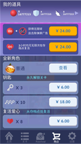 ps:该游戏已破解,进入所以的道具都是无限制使用的,并且还有内购功能