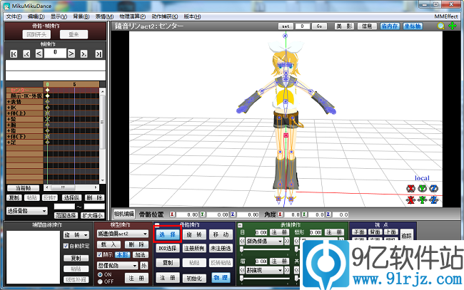4、点击骨骼操作中的选择,即可进行模型相关动作的设置
