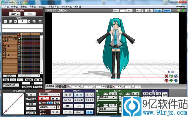 然后打开mikumikundance, 一样样导进去,然后播放,就可以观看了