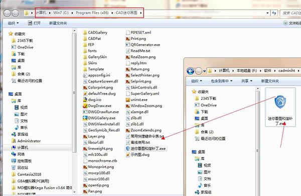 6、安装完成后将数据包中的注册机复制到软件安装目录下并运行,默认路径为C:Program Files (x86)CAD迷你画图