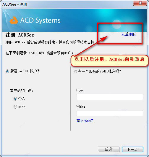 4、点右上方的以后注册跳过