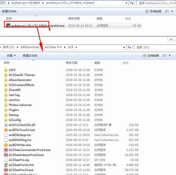1、安装完成,打开软件包,将unipatch目录下的注册机复制到软件安装目录下,默认路径为C:Program FilesACD SystemsACDSee Pro10.0,可以选中桌面图标右键打开文件位置进入安装目录。