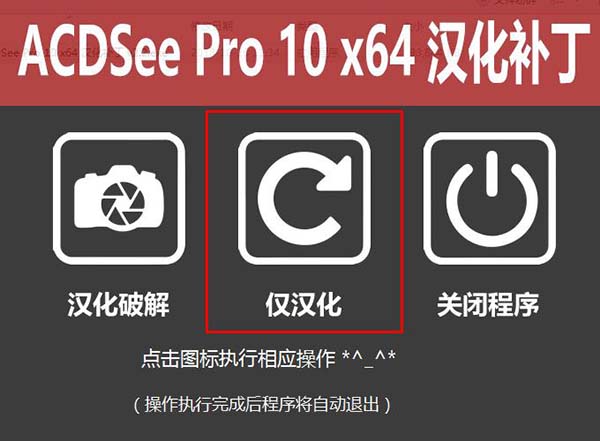 5、点击仅汉化图标即可完成汉化,汉化完成将自动退出界面。