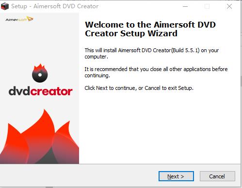 1、下载软件包解压,运行“aimer-dvd-creator v5.5.1.47 .exe”安装软件。