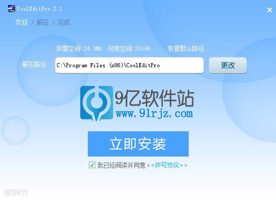 1、下载解压软件包,双击“CoolEditProSetup.exe”开始安装软件,选择软件的安装路径,然后点击立即安装。