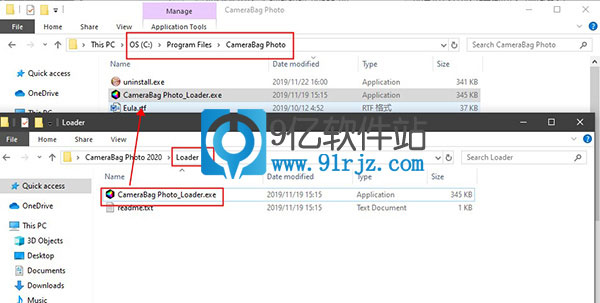 1、下载安装包,解压缩得到CameraBag Photo 2020原文件和破解补丁;