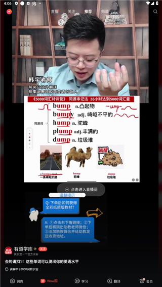 1、首先,我们打开有道词典app,通常我们都会在搜索框中输入单词来查词。2、下面,我们点击输入框左侧的照相机图标,就会进入摄像头取词界面。