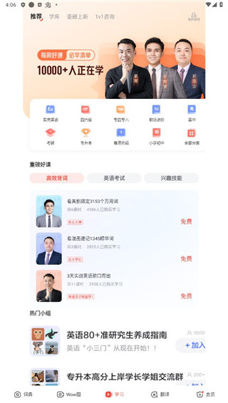 一站式的英语学习平台,词汇、口语、听力、阅读一网打尽。