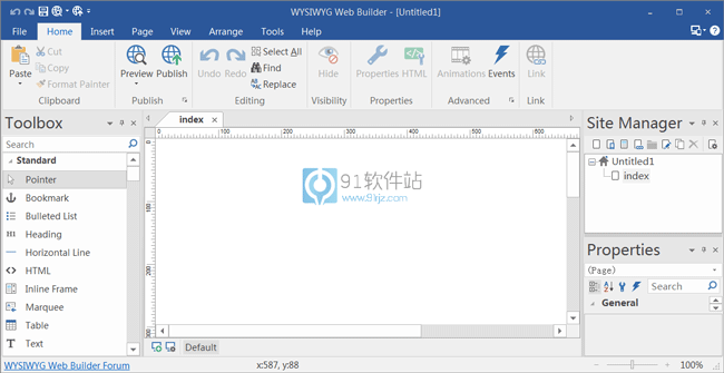 1、全面图形化设计网页和网站,即所见即所得2、适合新手,无需掌握Html知识即可设计,支持页面组件的拖拽功能
