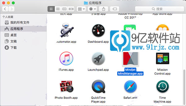 3、之后我们便可以在MacOS自带的文件管理器的“应用程序”栏目中找到我们的Mindjet MindManager(思维导图)mac破解版,找到它之后我们就可以双击打开将它运行了
