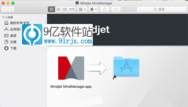 2、然后会出现一个弹窗示意我们将“MindManager.app”拖入到应用程序的文件夹中,我们照做,将它拖入进去即可(如果拖不动,请直接右键拷贝进去)
