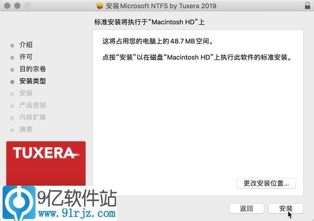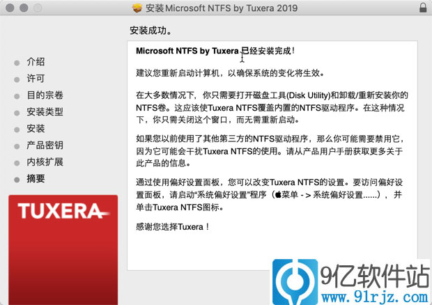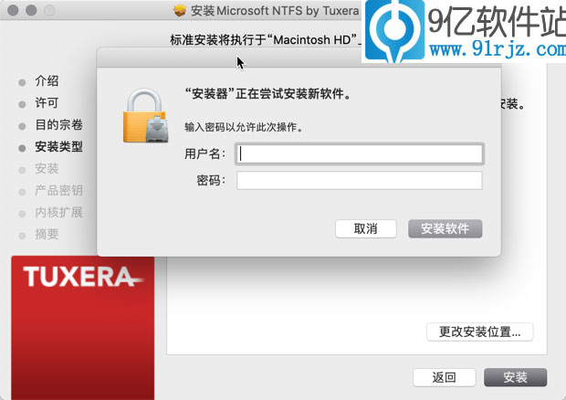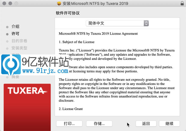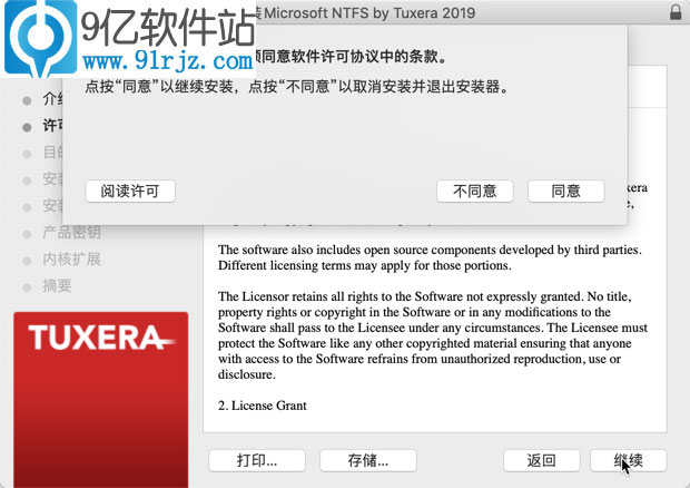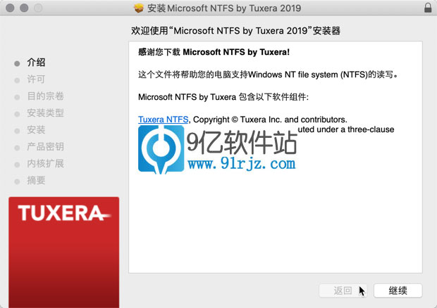 弹出tuxera NTFS 2019 中文破解版安装器,继续安装