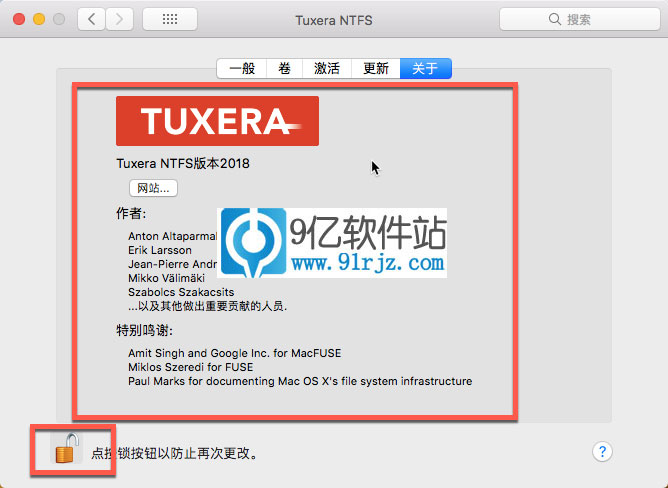 7.最好关于目录,您可以看到Tuxera NTFS 2018 Mac作者信息,相关介绍等。