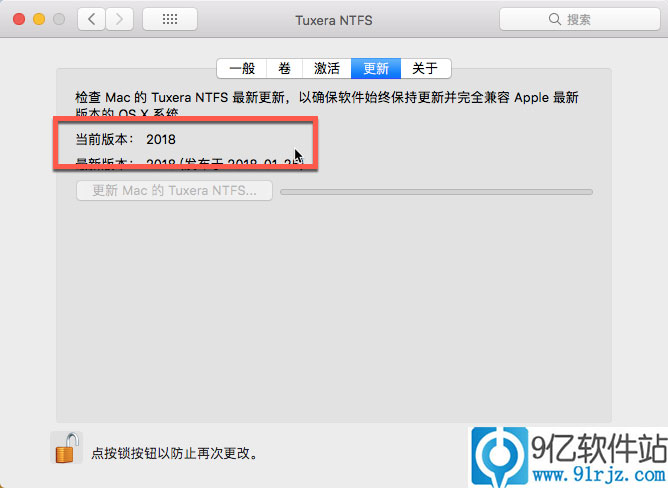 6.在更新目录下,您可以看到您的版本是当前Tuxera NTFS 2018 Mac最新版本。