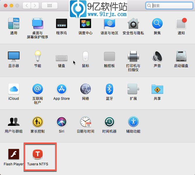 2.如果您还需要查看Tuxera NTFS 2018 Mac中文版的详细信息,请打开您的系统偏好设置,双击左下角的Tuxera NTFS 。