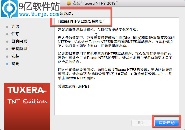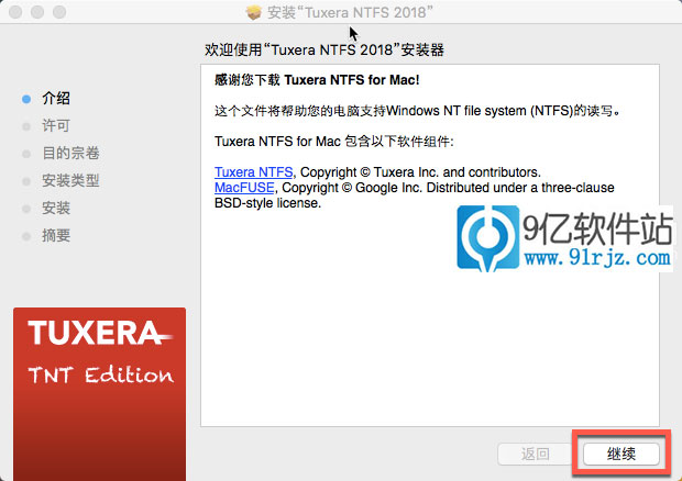 1.Tuxera NTFS 2018 for Mac(含Tuxera NTFS for Mac注册码):软件下载后,打开软件包,双击安装Tuxera NTFS进行安装。
