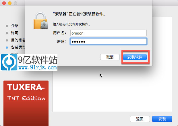 7.如图提示,输入电脑开机密码,点击安装软件。