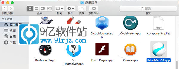 3、之后我们便可以在MacOS自带的文件管理器的“应用程序”栏目中找到我们的imindmap 10 Mac版,找到它之后我们就可以双击打开将它运行了
