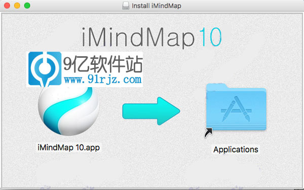 2、然后会出现一个弹窗示意我们将“imindmap 10.app”拖入到应用程序(applications)的文件夹中,我们照做,将它拖入进去即可