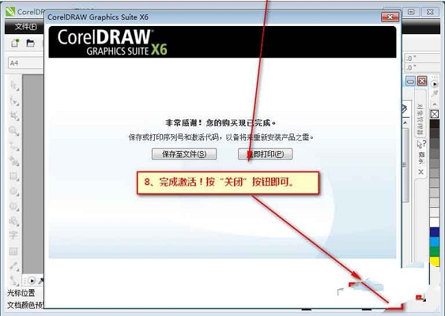 5、输入正确的序列号后,会提示您“非常感谢!您的购买已经完成。”这样就是已经激活成功了,可以免费使用了。最后点击“关闭”按钮就可以使用了
