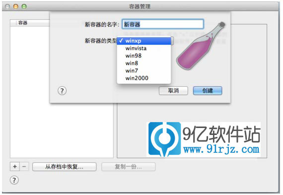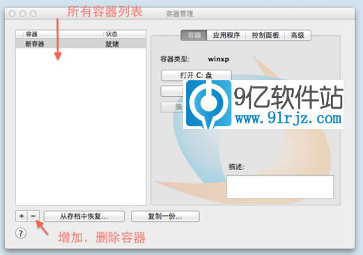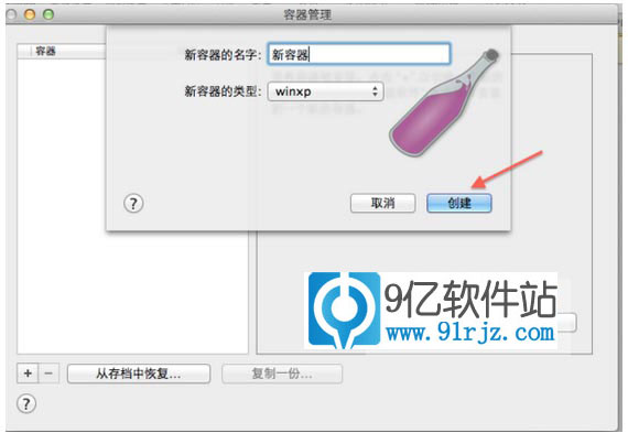 2、先建立一个容器,你可以理解为一个精简的WINDOWS虚拟机,所有程序都是安装在它里面;