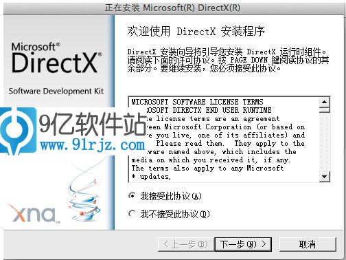接下来会下一个环节,程序的安装,小编演示一个安装DX9: