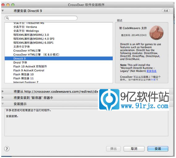 支持的程序----CROSSOVER可以完美运行的程序。安装过程中如果需要三方组件软件会自动帮你联网下载。