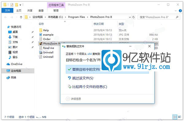 3、软件安装完成后先不要运行,复制对应的photozoom pro 8破解文件“PhotoZoom Pro 8.exe”到软件安装目录下替换原文件;