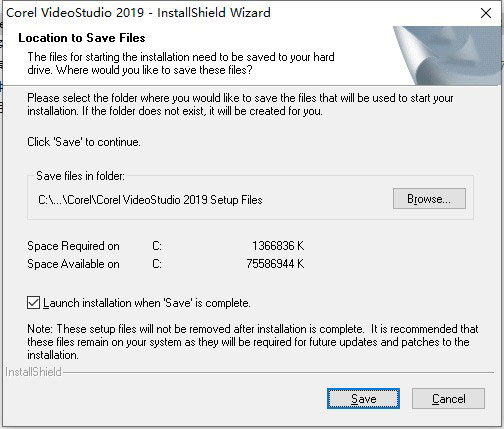 2、双击VideoStudio2019_64bit.exe运行安装,点击Browse..选择位置,点击save。
