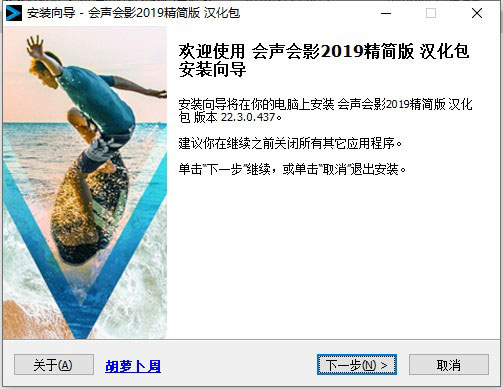 6、双击会声会影2019精简版_汉化包.exe安装,点击安装并等待完成即可。