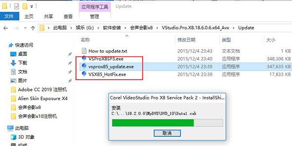 6、回到数据包中①首先安装“vsprox85_update”以升级到X8.5。②然后安装“VSX85_HotFix”。③最后安装“VSProX8SP3”。