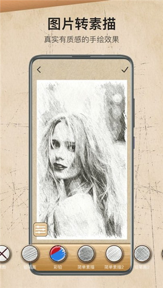 5.简单的操作方式,不用素描材料就能将图片一键点击处理成素描作品。