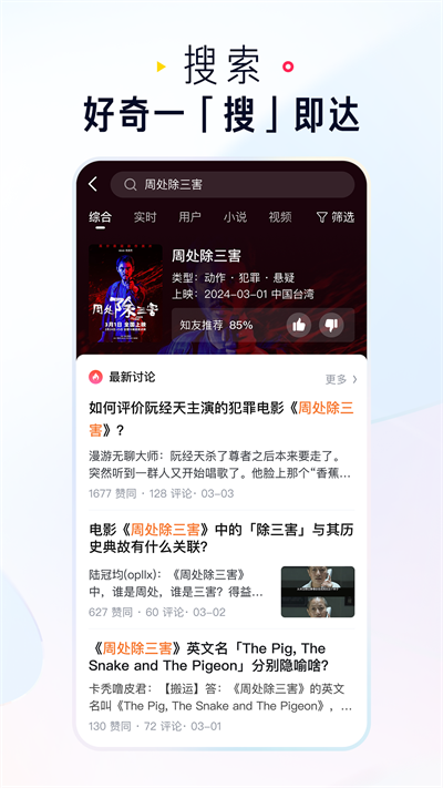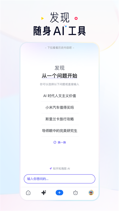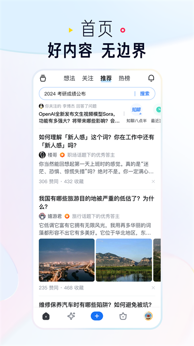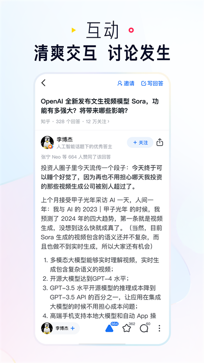有趣的话题和问题,在app的搜索框中输入任何你感兴趣的关键词,如「健身」或「理财」,你会看到关于它们的所有讨论;