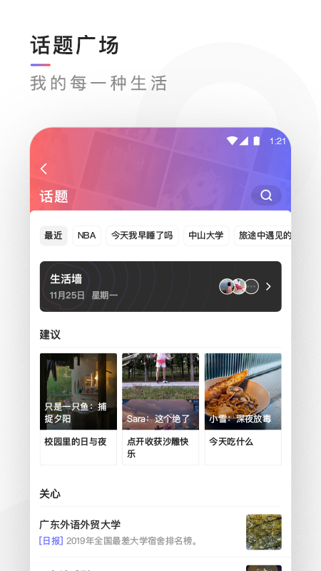 人越多的聚会,越不愿开口。话题,既是一种生活状态,也是一个表达的空间。在app寻一个角落,和小伙伴聊聊你们共同的话题。