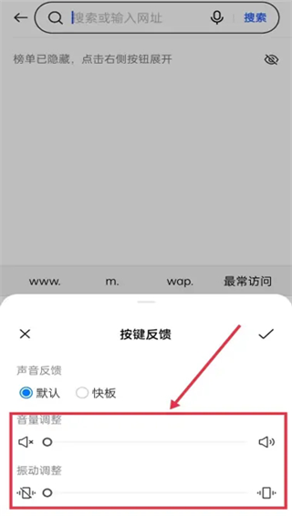 3、最后在“按键反馈”界面中,把声音与振动调整到静音,即可关闭。