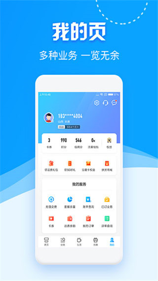 轻松办理4G套餐、流量加油包、积分兑换等业务,后续将支持终端、卡号等商品订购,助您精打细算、畅享移动体验;