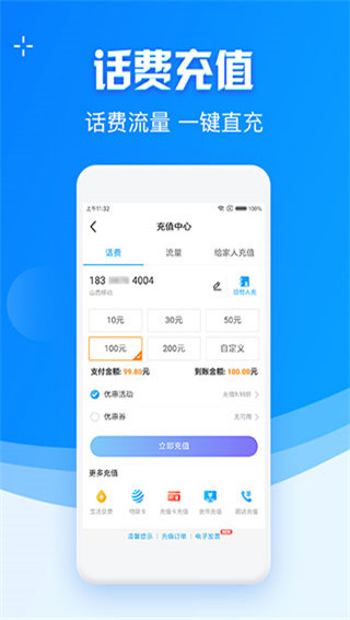 中国移动app官方版新增充值卡识别,简化支付流程,支持实时快速话费充值和优惠折扣,简单安全无需等待;
