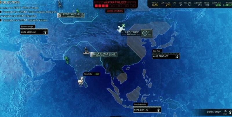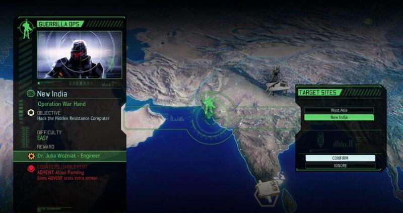 《幽浮2》世界地图基本与现实的地图相同,游戏的地图使用随机场景生成机制,官方将这个关卡生成模式称为procedurally-generated levels,游戏中关卡的生成,系统会随机构建地图地形、建筑风格、敌人种类分布和任务点等等,这套系统都有着严格的规定,每一次的敌人分布和任务点都有着固定的联系。在主线化身任务中,任务点的建筑不是随机生成的,但是除此之外的地形和建筑在进入之前仍是未知的。