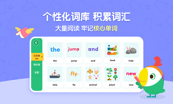 - 智能纠音,听读提升- 纯正英文发音输入,跟读智能打分,及时纠正错词发音,让孩子练就地道口语发音,成为听读小能手