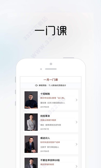一月一门课包含了樊登老师的《可复制领导力》以及其他顶级老师、大咖的企业培训课程(全集),涉及领导力,团队建设,营销,市场,产品等多个方面。