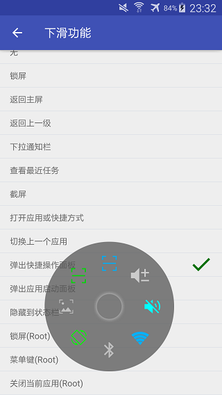 -快捷操作面板 (包含电源键长按, 音量调节, 响铃模式调节, Wifi, 蓝牙, 自动旋转, 屏幕常亮)